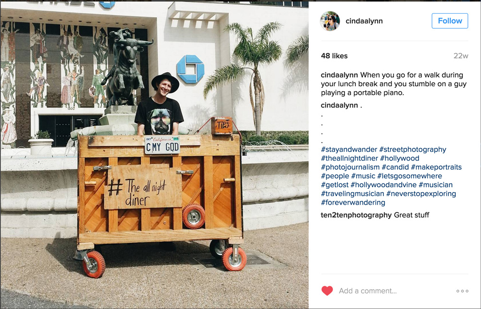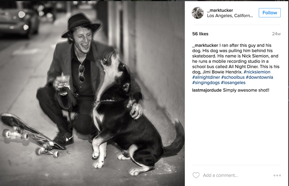 Below are I.G. posts from other accounts than our own. People love the service and experience Nicholas Provides. Whether thats the free music he plays on the corners of L.A. intersections, or directing a shoot in his studio.